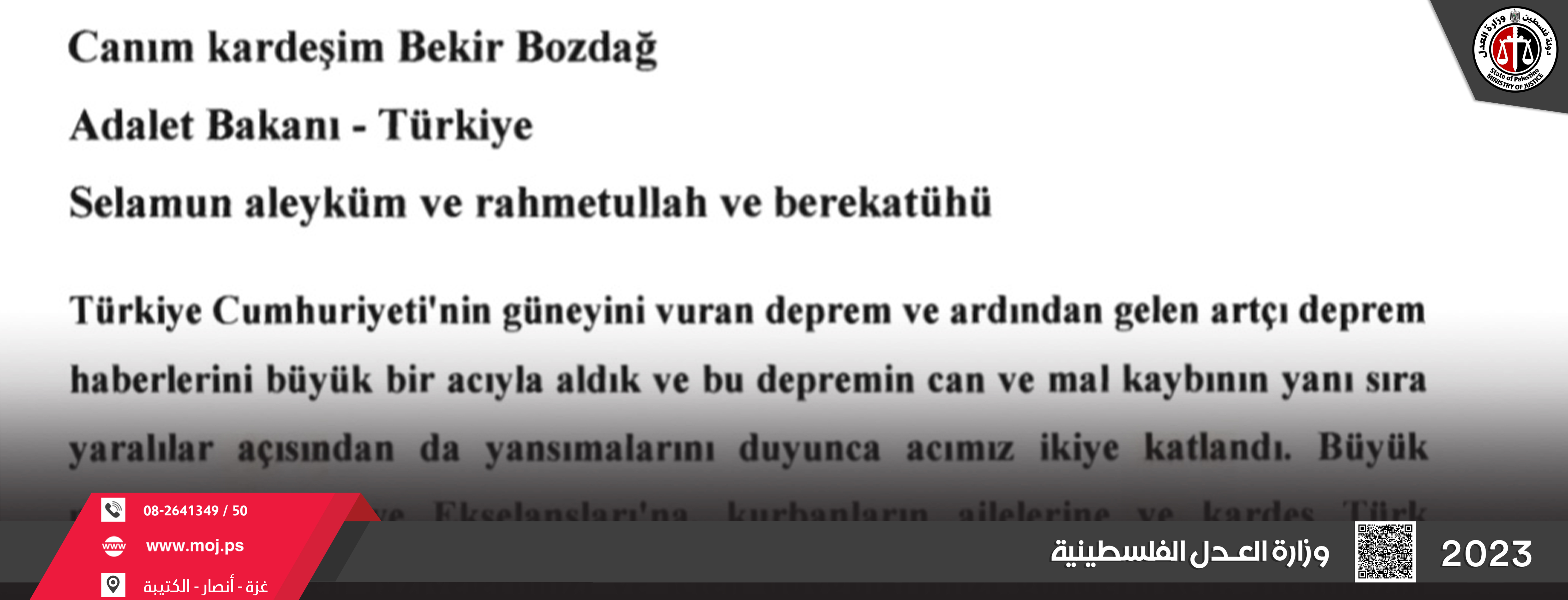 وكيل وزارة العدل يبعث رسالة تعزية ومواساة لوزير العدل التركي