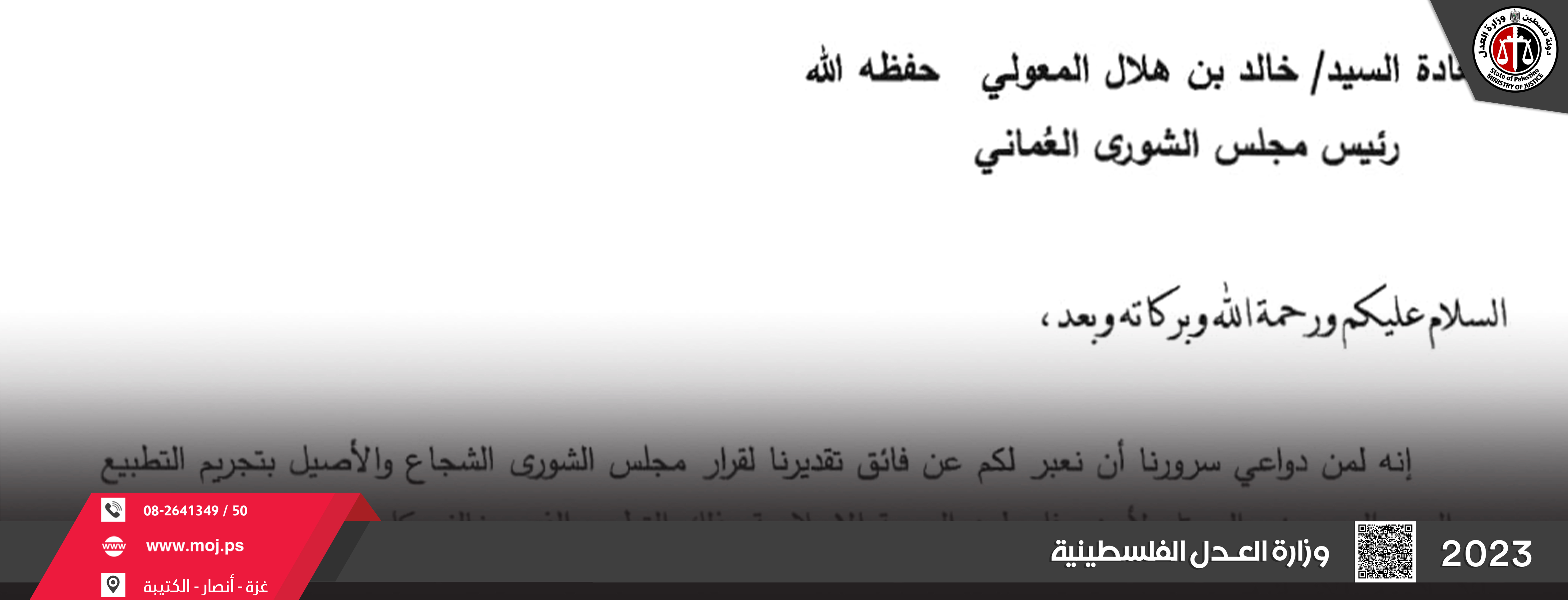 في التقرير السنوي 2022 لوزارة العدل: ترخيص هيئة محلية لمقاطعة الاحتلال وتقديم آلاف المعاملات العدلية