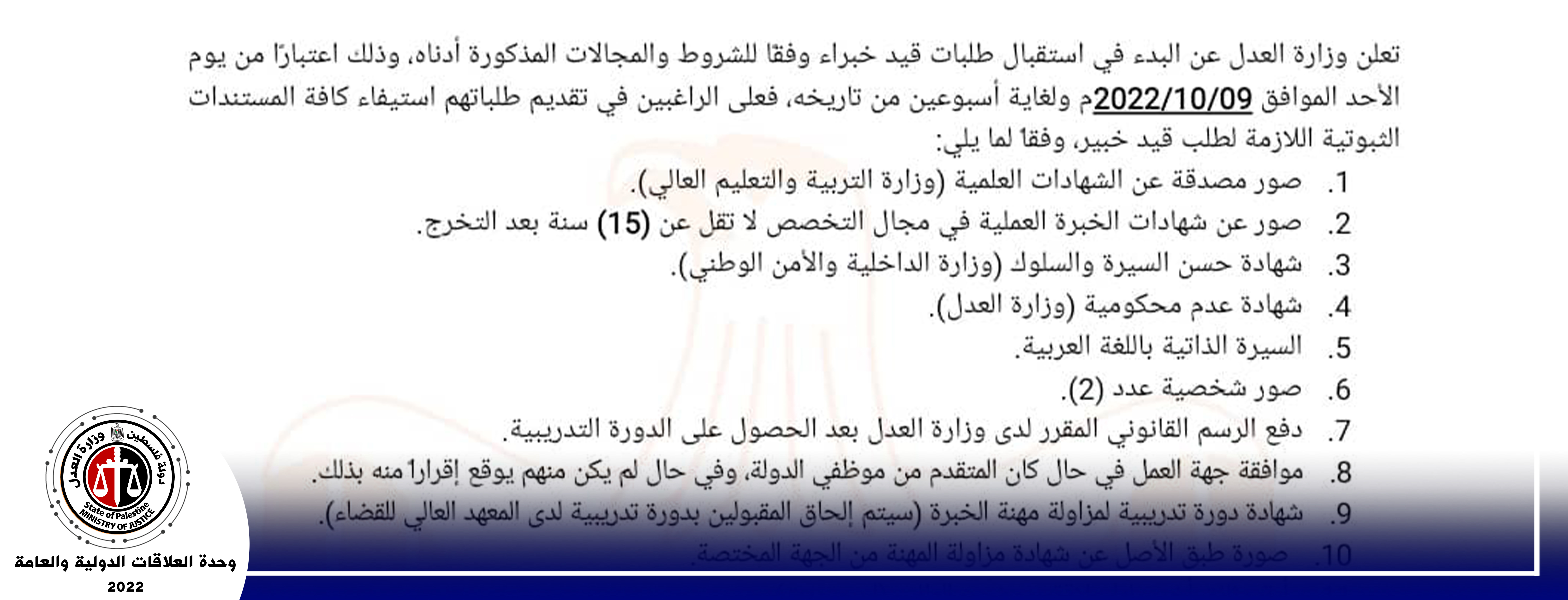 اعتمدت مسبقاً 155 خبيراً: وزارة العدل تعلن البدء باستقبال طلبات قيد خبراء
