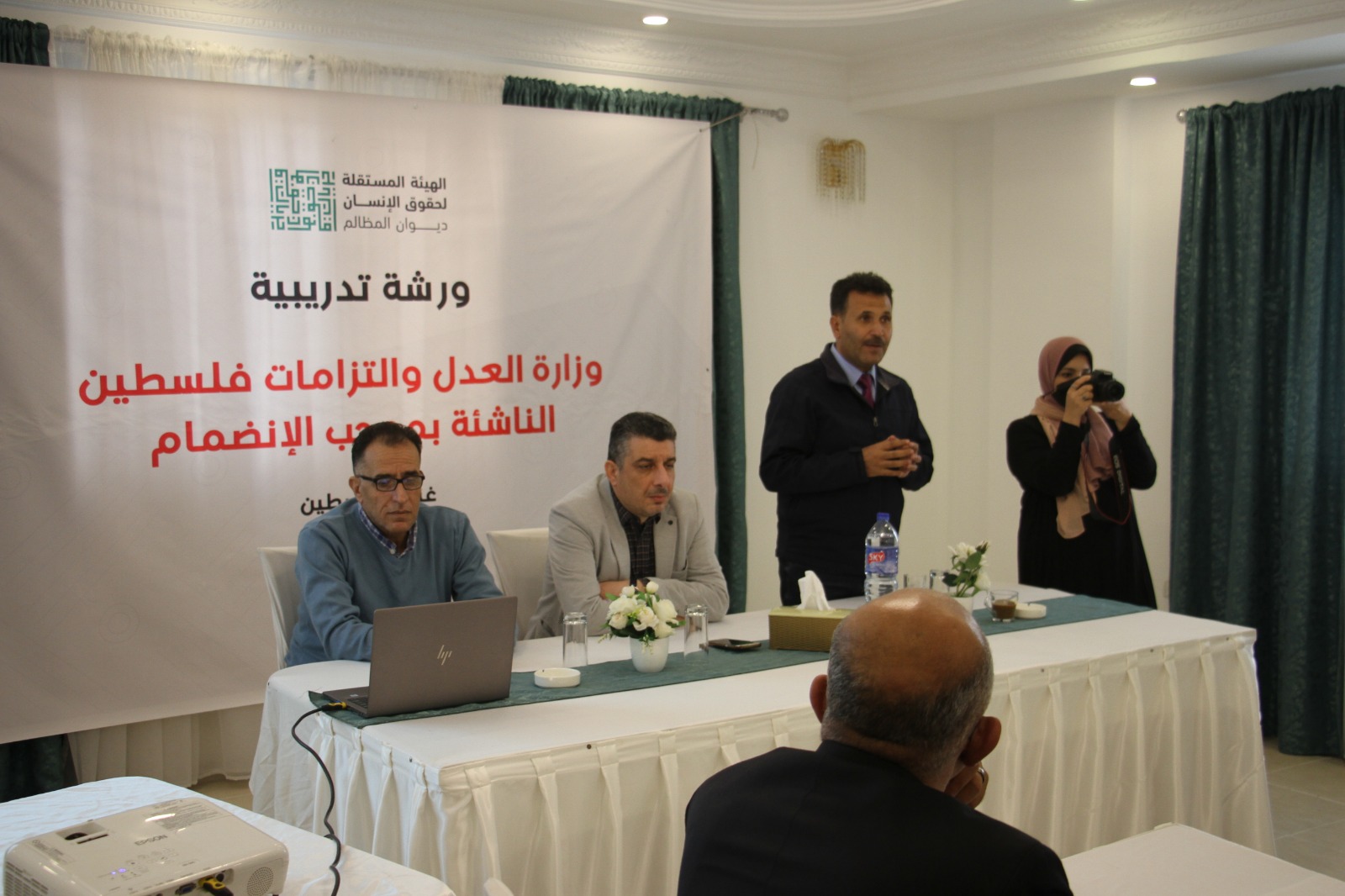 في إطار التعاون المشترك العدل تعقد ورشة تدريبية حول "الالتزامات الناشئة بموجب انضمام فلسطين لاتفاقيات حقوق الانسان"
