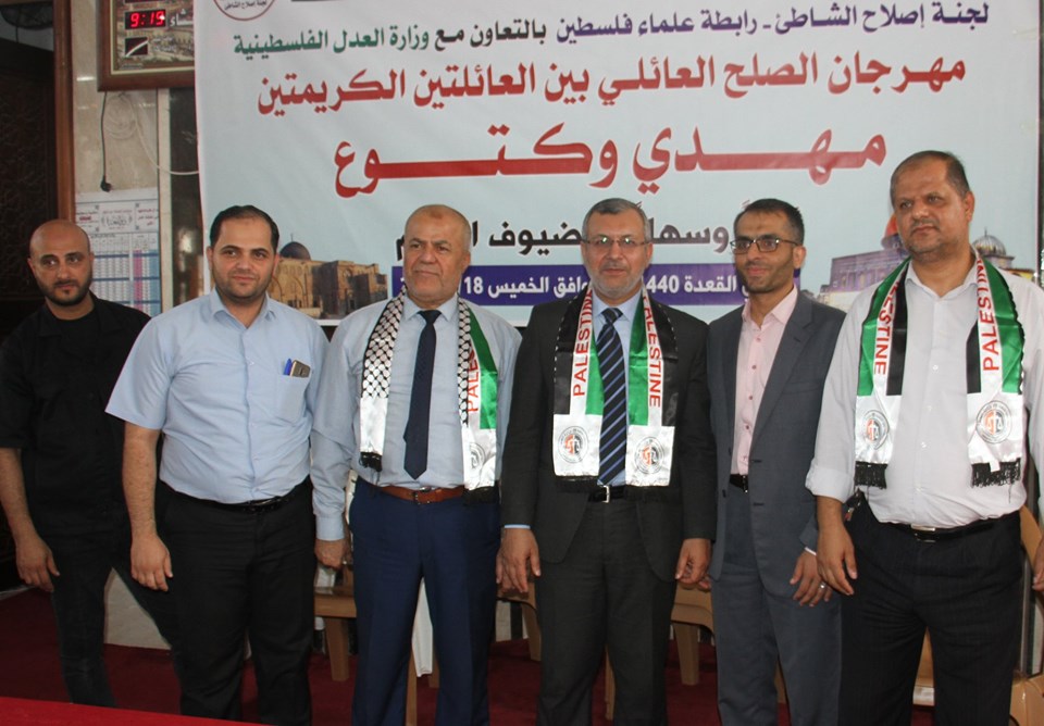 وزارة العدل ورابطة علماء فلسطين تنظم صلح بين عائلتي مهدي وكتوع بالشاطئ